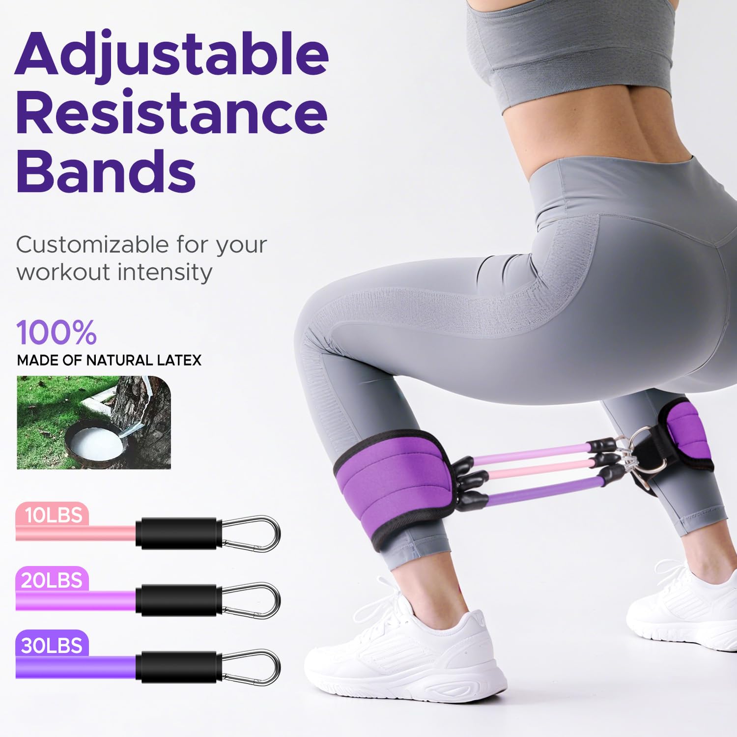 - Versatile Resistance for All Levels-This kit comes with multiple resistance tools: four latex resistance bands in dreamy hues, 3 ankle resistance bands with cuffs provide a versatile solution for working out various muscle groups, including the legs, buttocks, and hips. an elastic arm band, and a fabric resistance loop. These accessories make it easy to scale your routine whether you're improving flexibility, building strength, or just getting back into fitness.