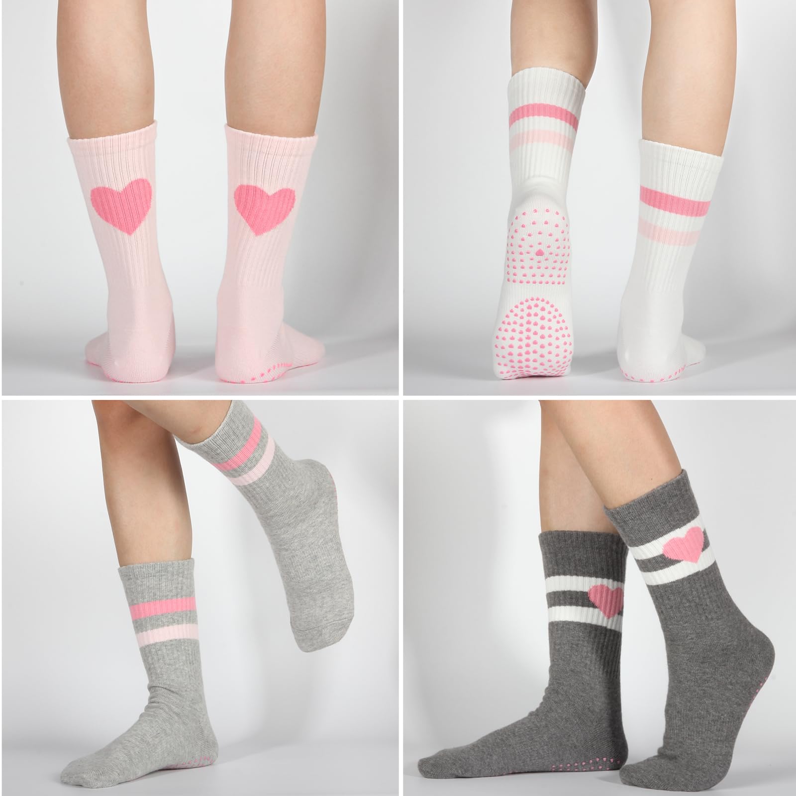 Pilates Socks with Grips for Women - Cute Non Slip Yoga Socks with Grippers on Bottom, Grippy & Non Skid Barre Hospital Slipper Sticky Socks for Workouts (4-Pack)